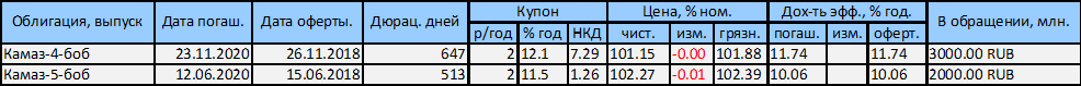 Бонды группы КАМАЗ пока не для нас23.12.2016На этой неделе группа КАМАЗ разместила выпуск 15-летних биржевых облигаций серии БО-15 в объеме 5,0 млрд руб. Выпущенные бумаги имеют 9,63% полугодовой купон, что дает 9,86% доходность к погашению в декабре 2031-го. Предусмотрен call-опцион в... |