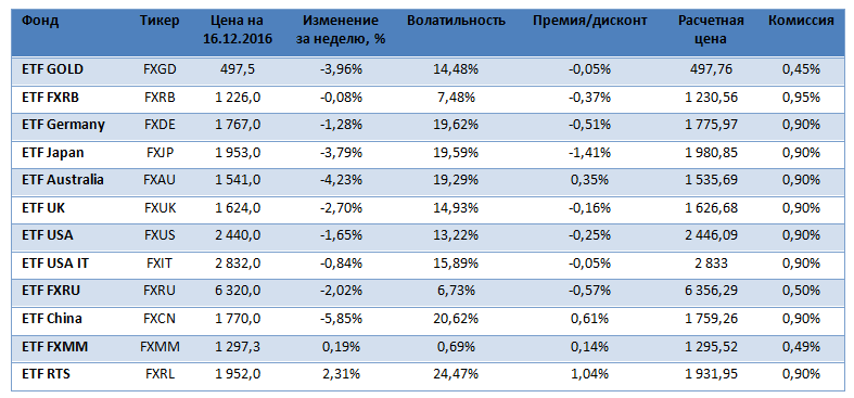 Курс ETF указали центробанки21.12.2016Федрезерв повысил базовую процентную ставку на 25 б.п., до 0,5-0,75%,. Причиной этого решения стало улучшение состояния экономики США и прогнозов по ней как в целом, так и по рынку труда в частности. Инфляция в текущем году ожидается на уровне... |