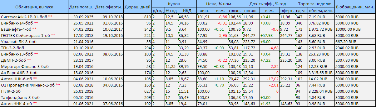 Рынок долга торговался на бледном новостном фоне29.02.2016На прошлой неделе банк Ак Барс выкупил в рамках оферты 2,9 млн (60%) биржевых облигаций выпуска БО-03. Перед этим ставка последнего, августовского купона была снижена на 4 п.п. ТрансФин-М также полностью выкупило выпуск БО-22 (1 млрд руб.) Были... |