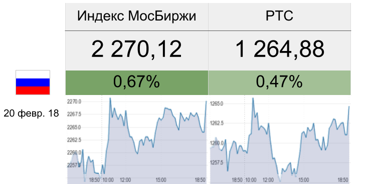 Рынок встал не с той ноги21.02.2018Сессия 20 февраля на российской бирже завершилась в умеренном плюсе. Лидером роста (+1,07%) стала транспортная отрасль. Аутсайдером был (-0,78%) химический сектор. Объем торгов оказался на 15% ниже среднего за последние 30 дней и составил 37 342... |