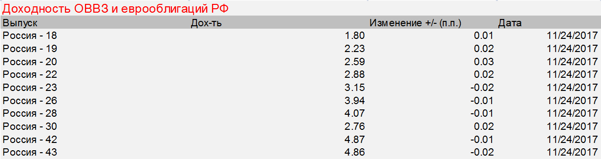 В доходностях суверенных еврооблигаций изменений в среднем не отмечается.