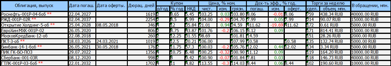 Перечень облигаций, вокруг которых совершено наибольшее число сделок