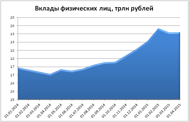 Кстати, именно высокие ставки по рублевым депозитам привели к росту объема средств населения в банках. В марте он повысился на 0,1%, до 19,1 трлн руб. Может показаться, что рост в 0,1% — это несерьезно, но на эту тему можно поспорить. Рубль за первый весенний месяц укрепился к доллару на довольно внушительные 5,7%.