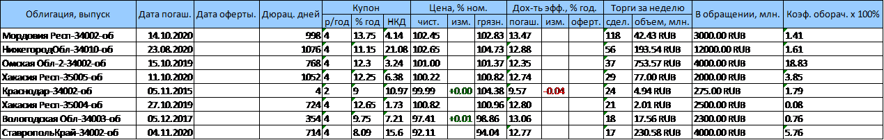 Результаты наиболее активных торгов муниципальными бумагами представлены в таблице выше.