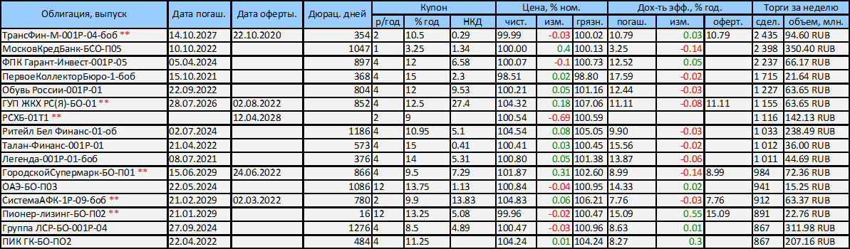 Перечень облигаций, вокруг которых совершено наибольшее число сделок