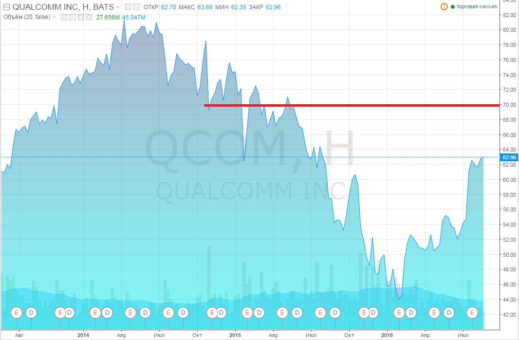 По моим расчетам, акции Qualcomm имеют потенциал роста 15%, до $70 и являются привлекательными для среднесрочных инвестиций.