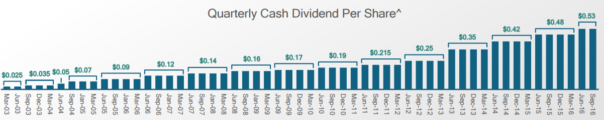 Стоит также отметить, что Qualcomm повышает дивидендные выплаты, а это увеличивает ее привлекательность для институциональных инвесторов. Компания располагает $3,2 млрд на программу выкупа акций, что позволит ей достигать высоких показателей EPS.