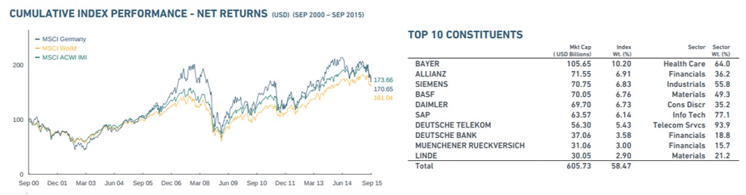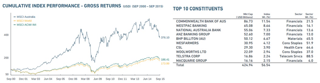 В индекс входит 70 эмитентов, среди которых больше всего компаний финансового сектора. Валовая доходность в годовом исчислении за десять лет составляет 4,61. В среднем MSCI Australia выглядит доходнее, чем MSCI World.