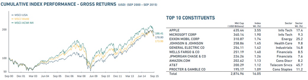 Учитывая, что каждый страновой фонд включает в себя наиболее крупных эмитентов из различных отраслей, при выборе наиболее эффективного ETF стоит обратить на общее состояние экономики того или иного государства и выяснить, насколько уверенно растет местный фондовый рынок. К примеру, за последние три года общая капитализация крупнейших фондовых рынков США практически удвоилась, что в результате и обеспечивает привлекательную доходность. Поскольку ETF включает компании из различных отраслей, создается некий натуральный хедж. Если какие-то циклические отрасли просели в связи с общим замедлением экономики, прибыль могут принести эмитенты, менее эластичные к макроэкономическим шокам. Для более полного анализа предлагаю разобраться страновой макроэкономической динамикой, общим состоянием фондового рынка и рассмотреть срез отраслей, входящих в MSCI Index.