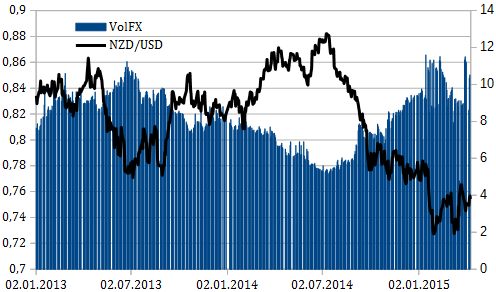 Пока многие ведущие центробанки делают ставку на мягкую денежно-кредитную политику, новозеландский регулятор сохраняет жесткий подход. Он не изменил cash rate даже перед лицом замедлившейся в последнем квартале 2014 года инфляции. В сопоставлении год к году она понизилась на 0,8%, а в поквартальном выражении — на 0,2%, причем в последнем случае подобной динамики не было уже три года. Виной тому стремительное пике молочных цен. Вместе с тем в начале года молоко понемногу стало отыгрывать потери, а, кроме того, более устойчивой стала ситуация с ценами на нефть, что поспособствовало достижению более успешных результатов во внешней торговле и вселило оптимизм в покупателей новозеландской валюты.