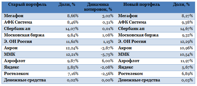 Структура портфеля на новую неделю