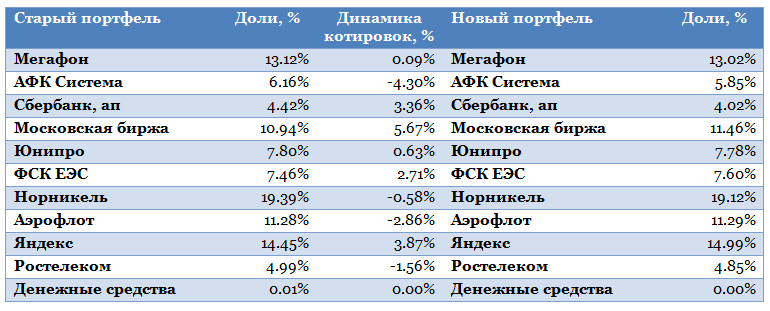Модельный портфель Инвесткафе формируется на основании рекомендаций отраслевых аналитиков агентства, которые предлагают наиболее интересные акции по соотношению риск/доходность из списка самых ликвидных бумаг отечественного фондового рынка. Вес каждой бумаги в портфеле определяется на основании потенциала ее роста, рассчитанного методами фундаментального анализа и скорректированного на индивидуальные риски эмитента. Цены, по которым будут производиться сделки, берутся по состоянию на закрытие пятницы либо другого последнего дня торговой недели. Начальная стоимость портфеля составляла немногим более 960 тыс. руб. Дата составления первого модельного портфеля по вышеописанному методу — 12 августа 2011 года.