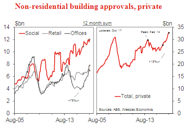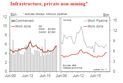 Стоит отметить, что повышение инвестиций в бизнес было неравномерным. Инвестиции в нестроительную сферу остались на уровнях прошлого года, расходы на оборудование росли на 2%, что ниже среднего показателя в 6%. Уверенный рост наблюдался в инфраструктурном бизнесе, который составил 2 п.п. от вышеупомянутых +4,6%. Вложения в сектор животноводства увеличились на 0,6 п.п. Неравномерность развития восходящего тренда в прямых инвестициях — это скорее временное явление перед широкомасштабным подъемом всей австралийской экономики.