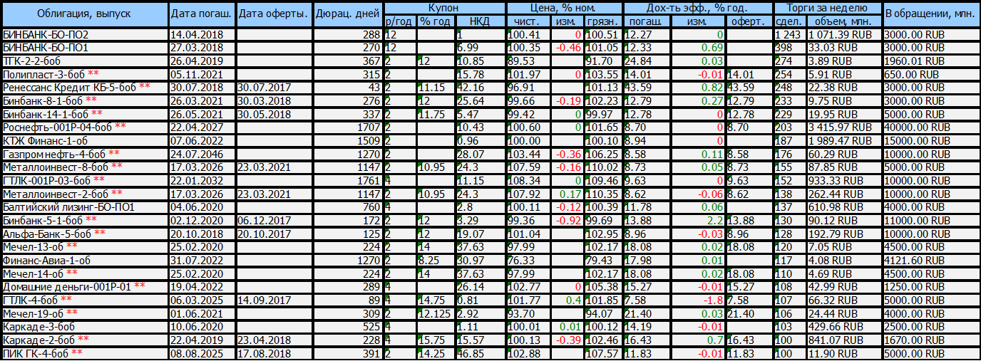 Перечень облигаций, вокруг которых совершено наибольшее число сделок