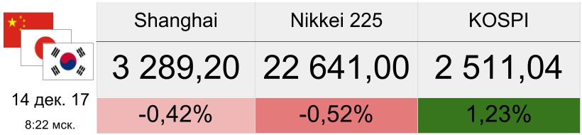 14 декабря до старта торгов в России индексы АТР демонстрируют преимущественно негативную динамику.
