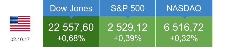 В сентябре индекс делового оптимизма ISM в США составил 60,8 п., хотя ожидалось его значение на уровне 58 п. после августовских 58,8 п. Эти данные позволили основным фондовым индексам Штатов продвинуться к новым историческим максимумам.