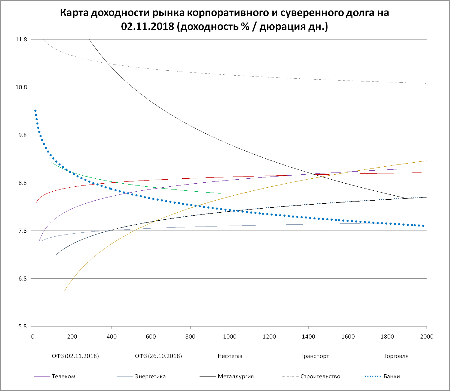 В нефтегазовом, телекоммуникационном, энергетическом и транспортном сегментах рынка корпоративного долга доходности облигаций также почти не менялись. В торговом сегменте YTM выросли в среднем на 0,23 п.п., в металлургическом — на 0,66 п.п., в строительном — на 0,27 п.п., в банковском — на 0,55 п.п.