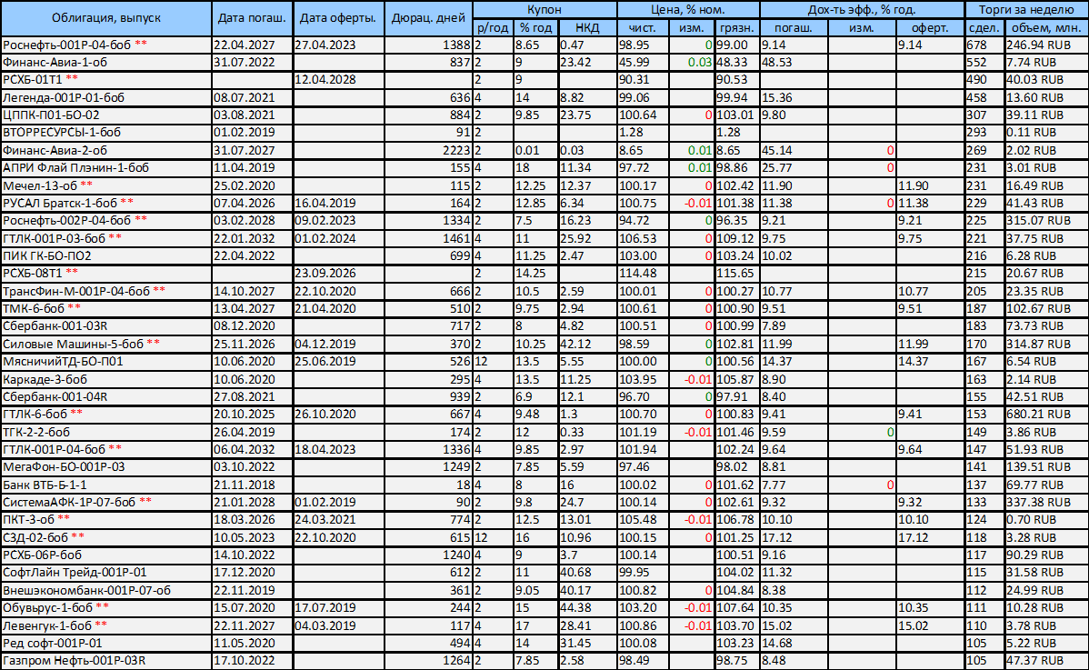 Перечень облигаций, вокруг которых совершено наибольшее число сделок