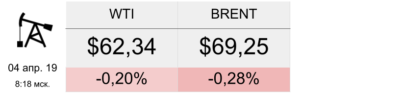 WTI накануне подешевела на 0,14%, до $62,47, а Brent подорожала на 0,1%, до $69,44. По данным EIA, запасы нефти в США за минувшую неделю увеличились на существенные 7,238 млн баррелей (API прогнозировало рост на 3 млн), а запасы бензина сократились на 1,781 млн баррелей. Недельный экспорт сырой нефти снизился с 2,886 млн до 2,723 млн баррелей в сутки. Ежесуточная добыча выросла до 12,2 млн баррелей. Примечательно, что импорт нефти в США из Венесуэлы из-за введенных санкций упал до нуля.