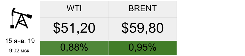 Цена на WTI 14 января снизилась на 1,94%, до $50,75, а Brent подешевела на 2,16%, до $59,24. Негативная динамика котировок черного золота объясняется все тем же релизом данных по торговле в Китае за декабрь. Согласно этой публикации, экспорт в декабре снизился на 4,4% г/г против ожидавшихся +2% и +5,4% отчетливо указав на замедление экономики крупнейшего потребителя нефти в мире. В то же время официальный представитель ОПЕК заявил, что не видит причин для созыва экстренного заседания участников картеля и достигнутого в декабре соглашения по сокращению добычи достаточно для стабилизации цены. Перед открытием торгов в России 15 января нефть умеренно подрастает в рамках диапазоне вчерашних торгов, что указывает на консолидацию.