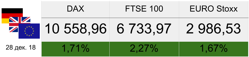 В декабре индекс потребительских цен (CPI) в Германии вырос на 0,1% м/м и на 1,7% г/г (прогноз: +0,3% м/м и +1,9% г/г). Вчера фондовые площадки Европы уверенно росли, а сегодня на них выходной.